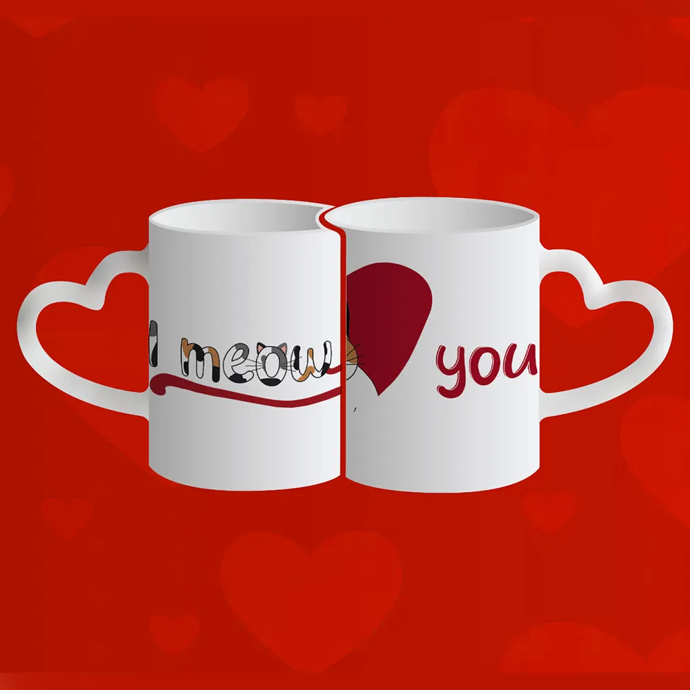Diseño de gatitos animados con corazón juntando sus colitas con la frase «I meow you». Se adapta perfectamente para una amplia gama de productos, como camisetas, hoddies, tazas, posters, stickers, imanes y más. Ya sea que lo uses para celebrar el día de San Valentín junto a tu pareja o para regalárselo, un detalle único y original. Este diseño elevará cualquier artículo de tu preferencia.