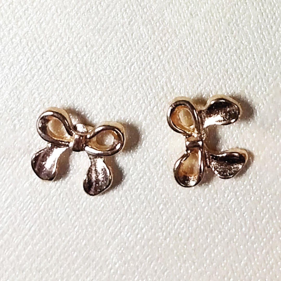 Lazos dorados que simbolizan ternura, unión y feminidad. 🎀 Un par de aretes con forma de lazos, elegantes y atractivos. Perfectos para regalar o para ti.