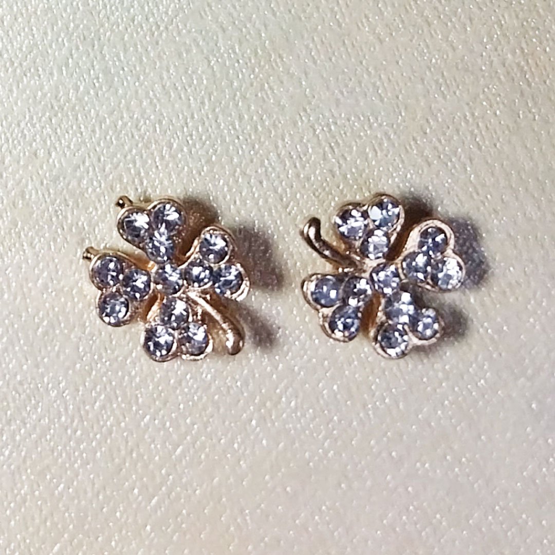 Brillo dorado de la suerte que acompaña cada paso. 🍀 Un par de aretes en forma de trébol de la suerte. Son elegantes y brillantes, perfectos para resaltar tu look.